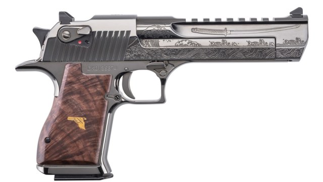 A: It is absolutely a fully functional Magnum Research Desert Eagle chambered in .50 AE. It uses the same proven gas-operated system and is built to the same rigorous specifications as any other Desert Eagle pistol. The artistry is integrated into a working firearm. We always recommend proper training and hearing protection, especially with a caliber this substantial.