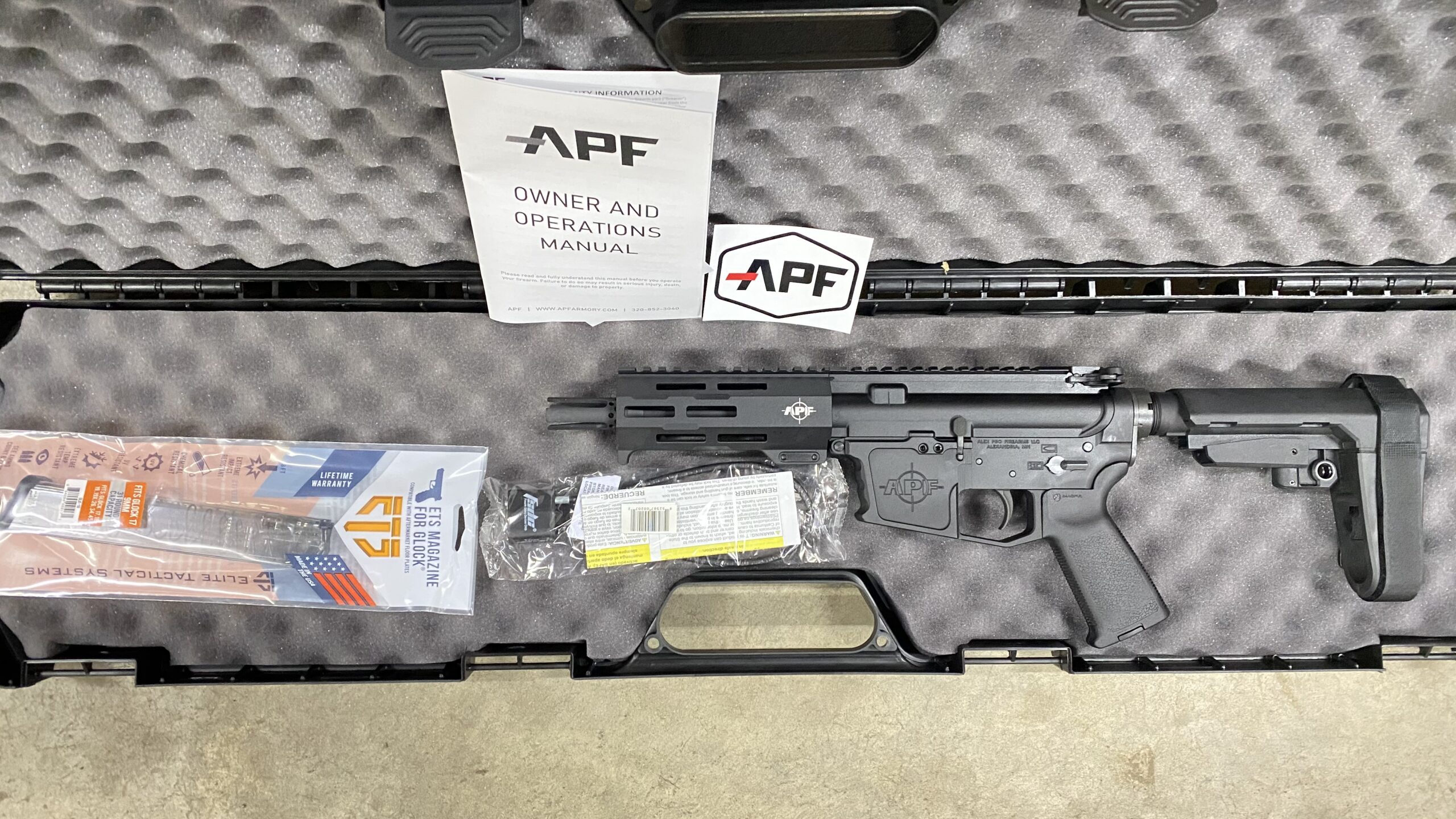 Alex pro firearms P-107 9mm AR-9 pistol. Comes with SBA brace, Forged Upper and billet lower.