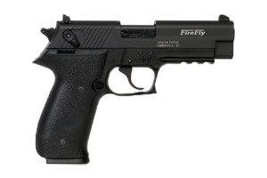 The GSG FireFly features a wear-resistant alloy frame outfitted with an integrated accessory rail. Its slide has adjustable sights, and along with the rugged blowback system, fixed barrel and superior ergonomic grip, the GSG FireFly delivers exceptional accuracy. Additional safeties include an internal locking device and slide mounted ambidextrous safety.