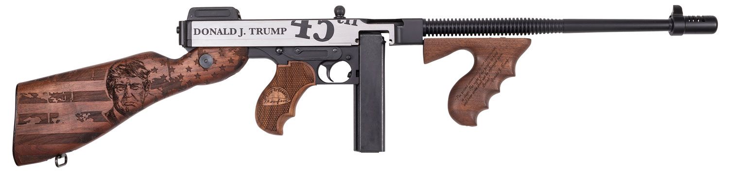 “The Second Amendment to the Constitution is clear. The right of the people to keep and bear arms shall not be infringed upon. Period.” With this statement Donald J. Trump, 45th President of The United States, reaffirmed his support for the gun rights of all Americans. With the invention of the Thompson, the United States reaffirmed its ability to deliver defeat to the enemies of liberty around the globe. It is only fitting that these two icons should be combined in the “Trump 45” commemorative Thompson Carbine.
