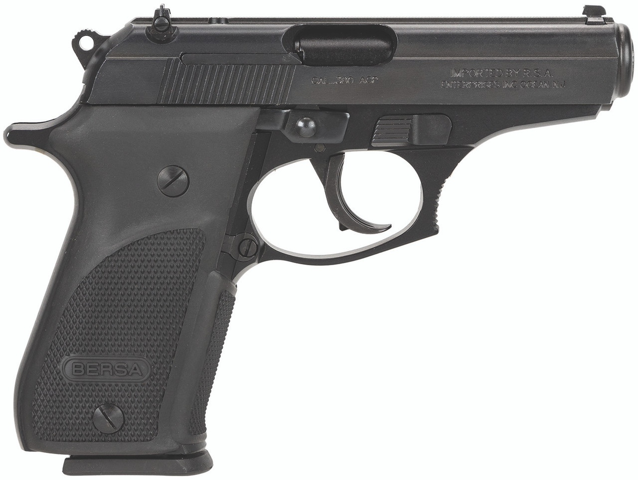 Bersa’s Thunder 380 is ideal for personal protection and offers accuracy, reliability, versatility in a lightweight, compact design. Its aluminum alloy frame has a combat style trigger guard, integral locking system and decocker safety, and a micro-polished bore with sharp, deep rifling. The steel slide features a 3-dot sight system for the prefect sight picture. The Thunder 380 features an extended finger rest on the bottom of the magazine for comfort.