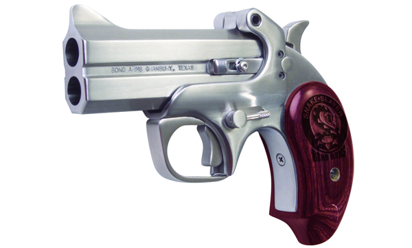 Bond Arms Snake Slayer, Derringer, 410 Gauge/45LC, 3″ Chamber, 3.5″ Barrel, Stainless Steel Frame, Rosewood Grips, Fixed Sights, 2Rd, with Trigger Guard BASS45410
