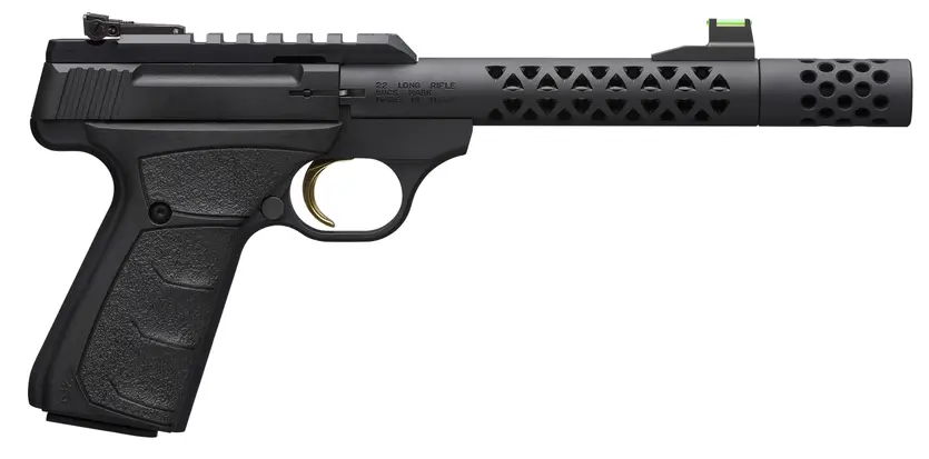 Blowback operated, autoloading rimfire handgun with lightweight, alloy sleeved steel Vision barrel, Picatinny optics rail, suppressor-ready threaded barrel, muzzle brake, UFX overmolded grips, fiber-optic front sight, adjustable rear sight.
