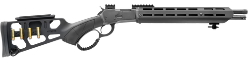 .44MAG, Lever Action, 16 (407 mm) Octagonal/Round, Muzzle Thread 5/8 x 24, Angle ejection, 5/Magazine Tube, Single, Synthetic Stock with Adj. Comb, forend aluminum profile with M-Lok, 1:18.7 Twist Rate, Picatinny on the top of the receiver, Hammer Half Cock, 7Ibs (3.2Kg)., 35 (877 mm), Steel – Matte blued, Manual + Paracord Sling, Master Pack of 5, Wide Lever w/Paracord + Rubber Recoil Pad + Triangular Profile Forend; 2 attachments for quick release QD Mount