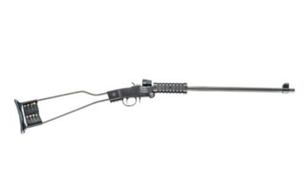 The Little Badger is the ultimate packable survival gun. Available in .22lr or .22WMR, this lightweight, ultra-compact, break-open rifle is designed to go anywhere at any time. When the action is opened and the gun folded, it measures a mere 17” overall length and stows neatly in an included pack/case. The wire frame stock keeps weight to a minimum and the integrated shell holder in the back holds twelve cartridges so ammo is always at the ready.