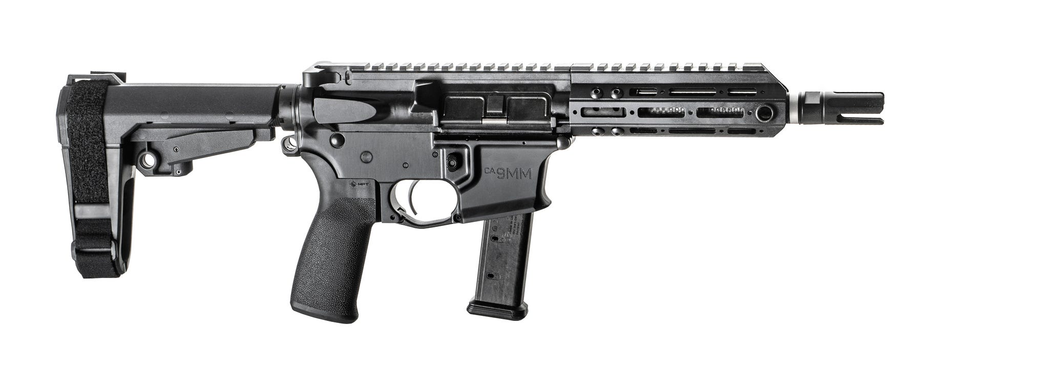 The Christensen Arms CA9MM delivers an exceptional pistol that is reliable, durable, and accurate. It comes chambered in 9mm with a 7.5 inch barrel. Features include an adjustable brace, an M-LOK handguard, Glock mag compatibility, and a 30 round magazine.