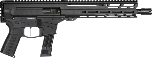 Chambered in 9mm? Check. Takes Sig magazines? Check. Delivering all the capability the MkGs platform has become renowned for, the 10.50″ 9mm MkGs DISSENT is one of the most portable PDWs on the market today. Crafted from 7075 T6 Aluminum receivers, the 9mm DISSENT is ruggedly built. All DISSENTs come with a 1913 picatinny rail end cap allowing the attachment of slings, pistol brace, or stock* of your choice. Bolt operation is accomplished via the forward non-reciprocating side charger, allowing for quick use while staying on target.Radial Delayed Blowback Compact Action: 9mm ammo loadings can vary greatly, from supersonic to subsonic. With a wide range of bullet weights comes new engineering challenges in a new platform. The 9mm Radial Delayed Blowback Compact Action addresses these challenges by utilizing a fixed ejector in the upper receiver. Added benefits are a lighter BCG with less felt recoil while providing consistent performance with a wide range of ammo and maintaining lower compatibility with a wider range of lowers. TriggerTech AR-D 2-Stage Trigger: TriggerTechs AR-D trigger was developed in collaboration with CMMG to be fully optimized for use with DISSENT firearms and upper receiver groups. With a 4 lb pull weight, the AR-D trigger showcases a light, repeatable break. CMMG does not guarantee optimal DISSENT functionality with Mil-spec or other aftermarket triggers.