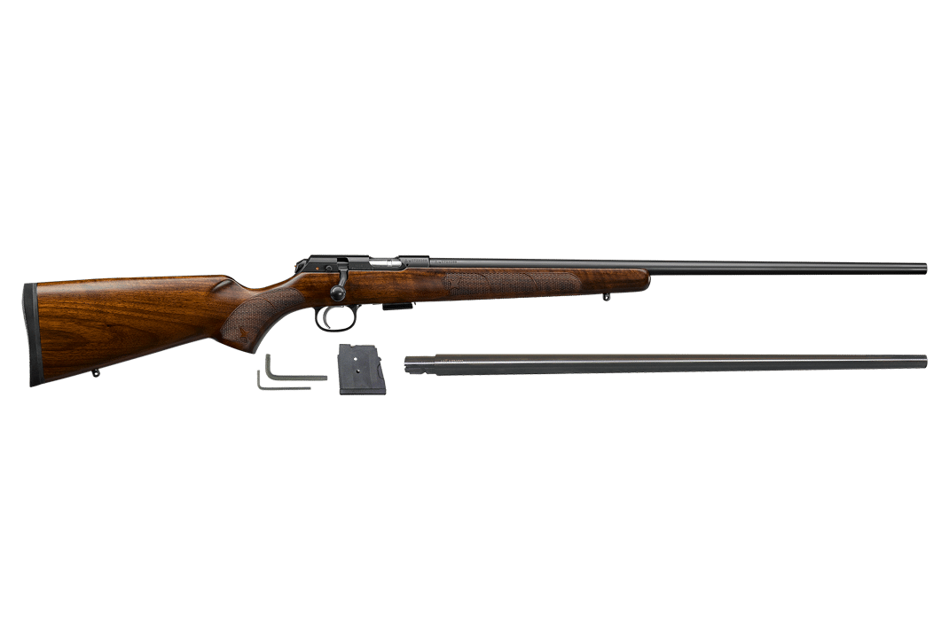 The classic American-style rimfire rifle, this gorgeous 457 has a 24.8 barrel with no sights and is meant to be topped with a scope. Its Turkish walnut stock has a high, flat comb and a classic checkering pattern. Like all of our 457s, it has an 11mm dovetail milled into the top of its receiver for attaching scope ringmounts.
