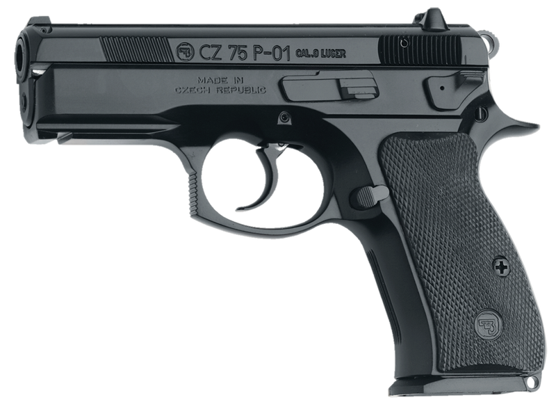 The CZ P-01 is a compact, aluminum-framed 9mm designed for LE and Military duty, but its compact size and the reduced weight due to its forged alloy frame make it ideal for discrete carry as well. Equipped with a decocker, the P-01, in 9mm, provides convenience for those who prefer hammer-down carry. With a heavy first-round trigger pull, any additional shots are a light, crisp single action.