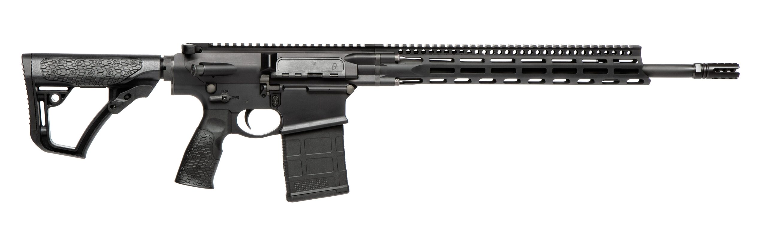 The DD5 V4, chambered in either 6.5 Creedmoor or 7.62x51mm NATO, provides users of the Daniel Defense semi-automatic platform even greater long-range precision shooting capability. The highly popular 6.5 Creedmoor takes advantage of superior ballistic coefficients to offer both flatter trajectories and reduced wind drift at levels normally reserved for much heavier recoiling long action calibers. These gains in ballistic efficiency help the modern shooter stretch the effective range out to 1,000 meters or more. This highly accurate and durable rifle includes an adjustable gas block that allows for a consistent feel whether shooting suppressed or unsuppressed. The perfected bolt carrier group reduces overall recoil impulse and is easy to maintain and operate in all conditions.