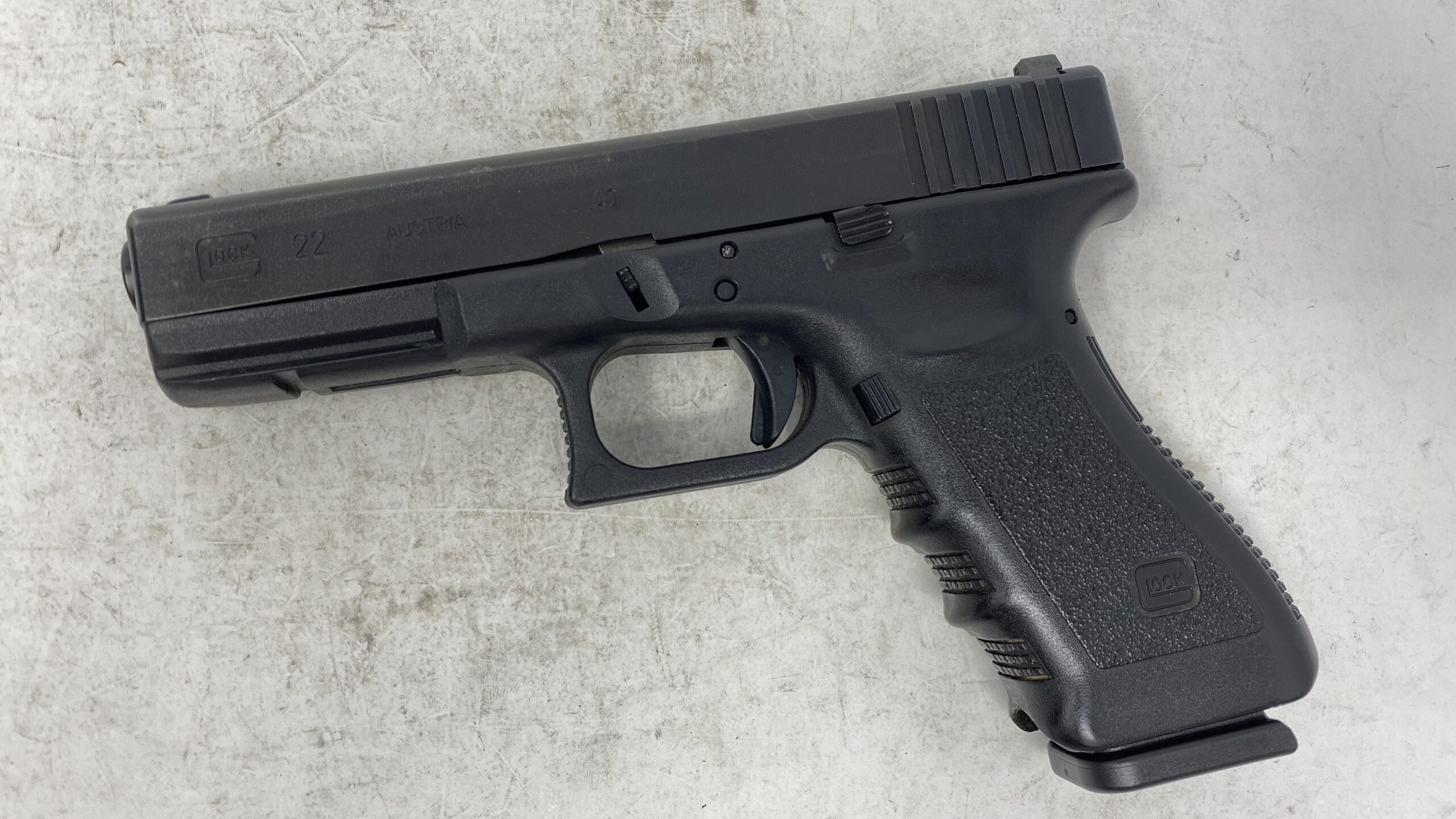 Used Glock 22 Gen 3 in very good to great condition. We have several of these on hand. What you see pictured in the case may not be exactly what you receive in terms of accessories and sights, as these are used so this will vary. Each will ship with one 15 rd. factory Glock magazine. We have additional used G22 magazines on sale for $17.95.
