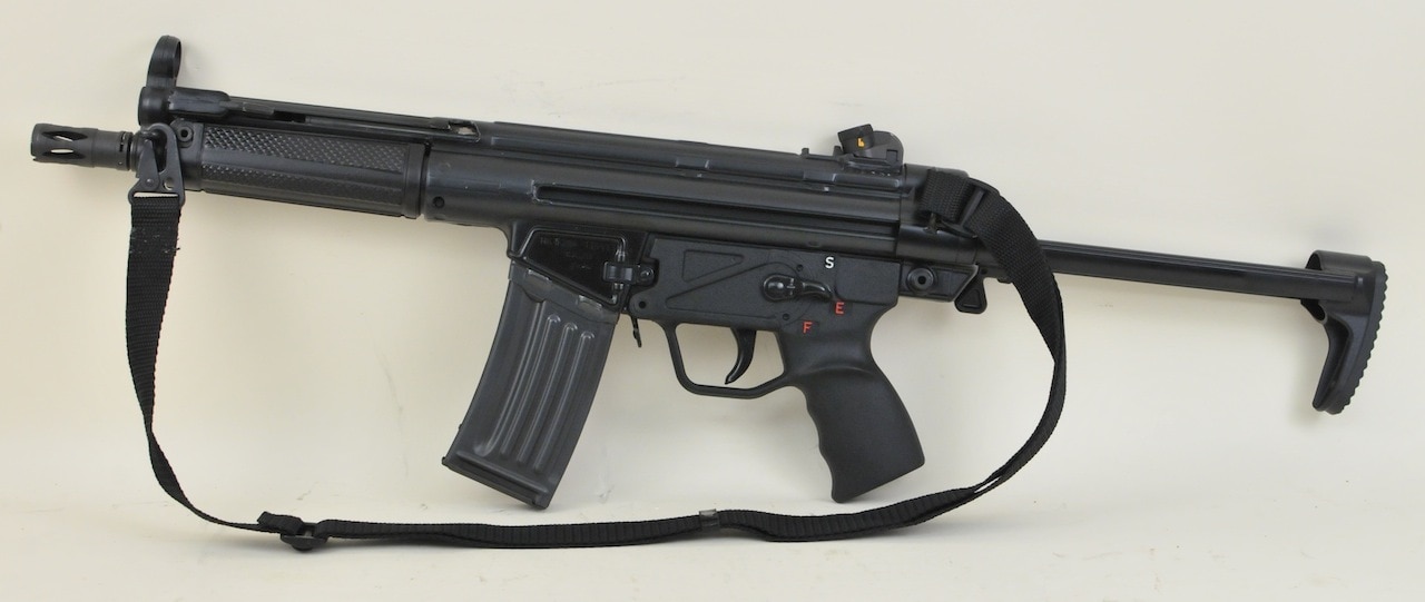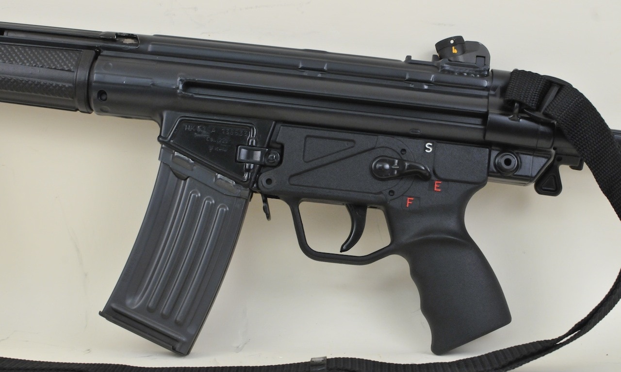 Rifle power in a submachine gun package, the HK53. It is truly neither rifle, nor submachine gun, but a strange mixture of both. A submachine gun is defined as a select fire weapon, fired from the shoulder using a pistol cartridge. However, with only an 8.3 inch barrel, the HK53 hardly qualifies as a rifle. The HK53 fills the void where pistol cartridge submachine guns like the MP5 or MP5/10 and MP5/40 may not be suitable against armored suspects.
