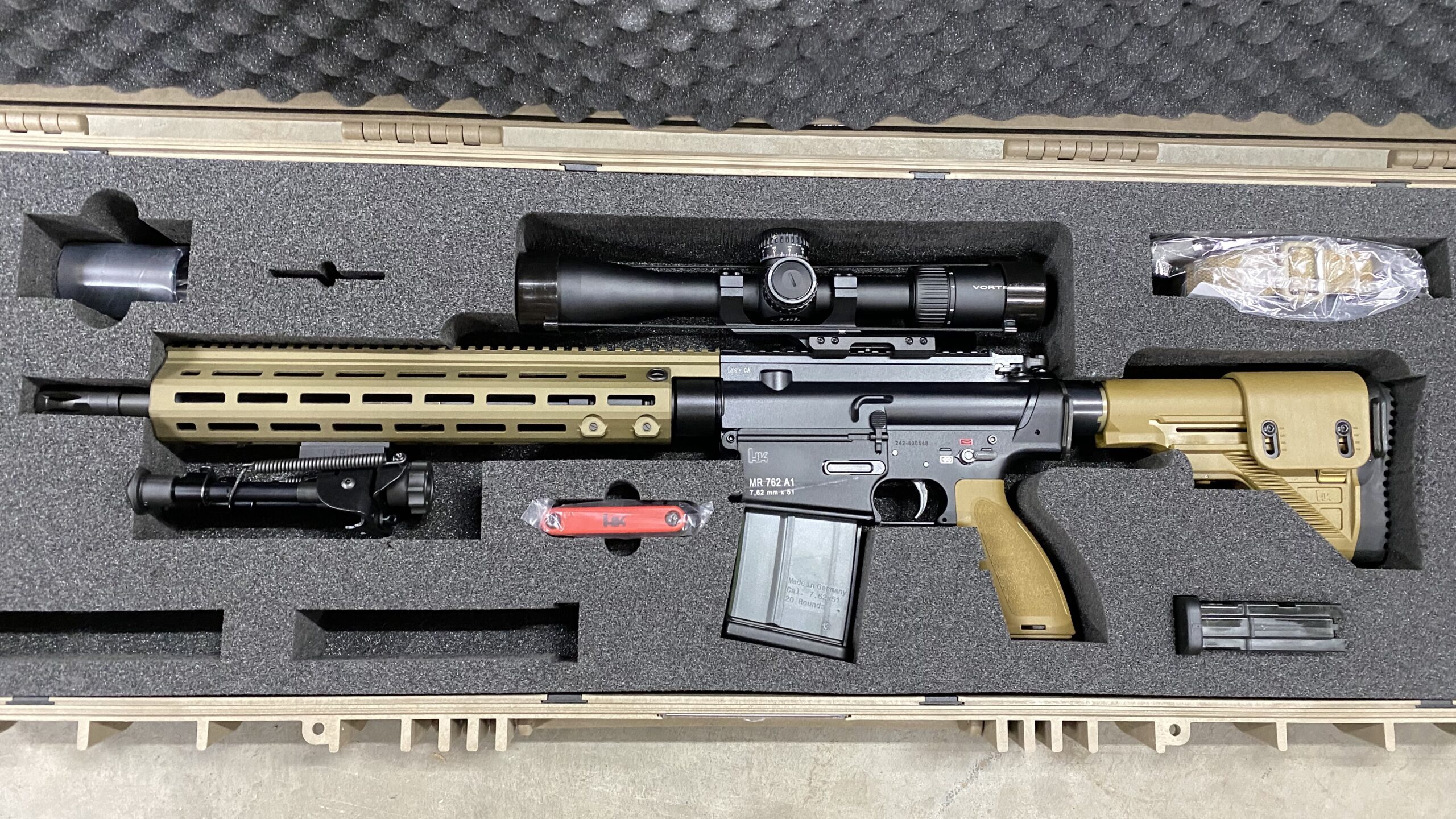 Taking an essentially standard MR762A1 (caliber 7.62 x 51 mm NATO) semi- automatic rifle, Heckler & Koch USA turns it into a more effective precision rifle by an astute addition of the right optics and accessories. A Vortex Viper PSTII 3-15×44 FFP MRAD, HK G28 adjustable cheekpiece buttstock, and LaRue Tactical BRM-S bipod are the primary add-ons that make the MR762A1 Long Rifle Package (LRP) more than a sum of parts.