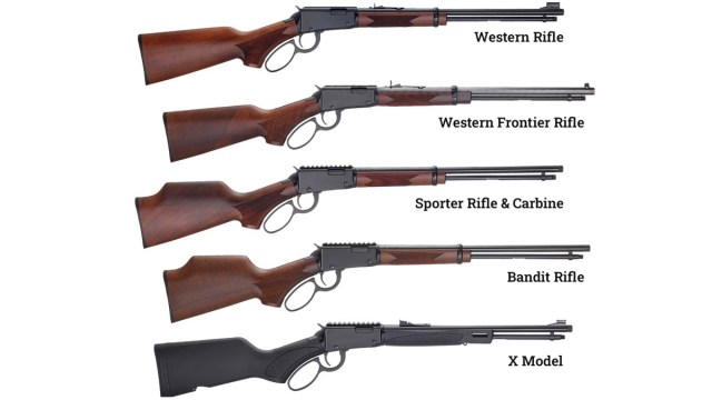 A: It’s about matching the rifle to your style. Think of it this way: The Henry Repeating Arms H1 Western is the full-dress classic. The H1 Western Frontier is a slightly simplified version of that. The H1 Sporter & Carbine are your sleek, all-purpose hunting rifles. The H1 Bandit leans into a compact, handy “trapper” style. The H1 X Model is the modern one, built for optics, lights, and a tactical look. Same great H1 action heart, different personality.