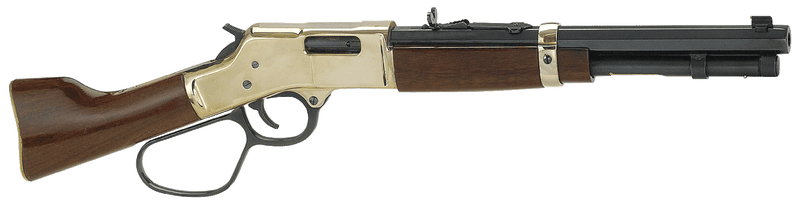 Henry’s Mare’s Leg lever action pistol is a cut-down, modified version of the repeating rifle, and can be holstered like a pistol but fired with the speed of a lever-action rifle. The handcrafted American Walnut stock is cut to the exact specification and the large loop lever, coupled with the legendary crisp Henry action, makes it easy for you to enjoy those rapid-fire repeating shots. This model has a 12.9″ barrel chambered in 44 Magnum and has a polished brass metal finish.