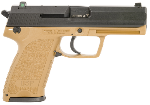 The USP Tactical models are designed for users who need the features found on the HK Mark 23, but in a more compact pistol. The USP Tactical features safety/decocking lever on left; threaded O-ring barrel with polygonal bore profile; High Profile night sights; Match Grade trigger; adjustable trigger stop; ability to be converted to any of nine trigger firing modes; recoil reduction system; oversized trigger guard; ambidextrous magazine release lever; extended slide release and extractor doubles as a loaded chamber indicator. Includes three magazines.