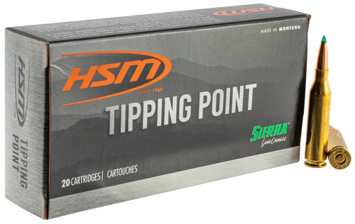 A line of extraordinary hunting cartridges changes the paradigm of what to expect from a factory round. That describes HSMs Tipping Point to a T. Match grade accuracy combined with a payoff of extreme terminal results.