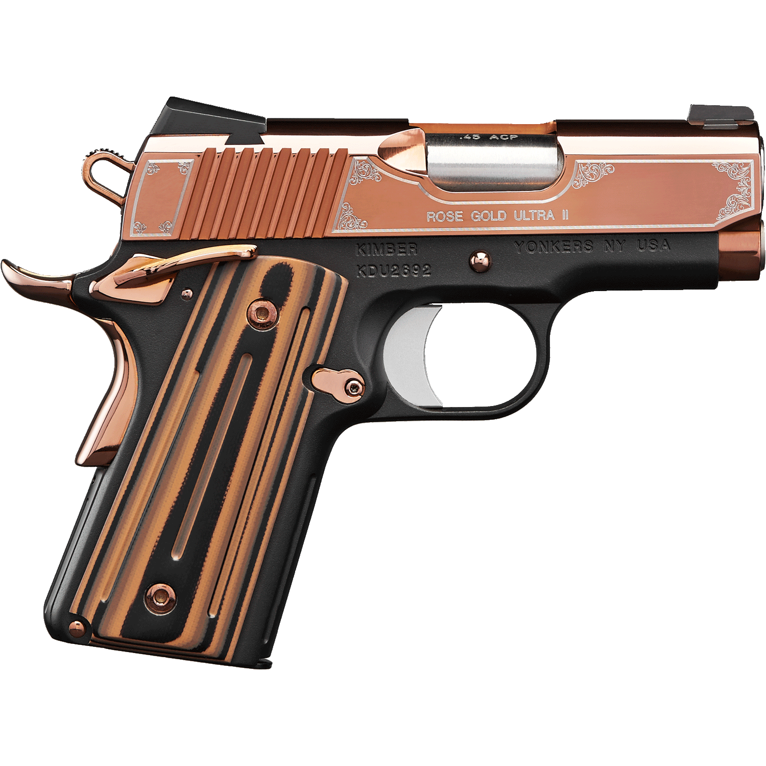 The Rose Gold Ultra II is a striking personal defense handgun that combines vibrant style with a host of performance-enhancing features.