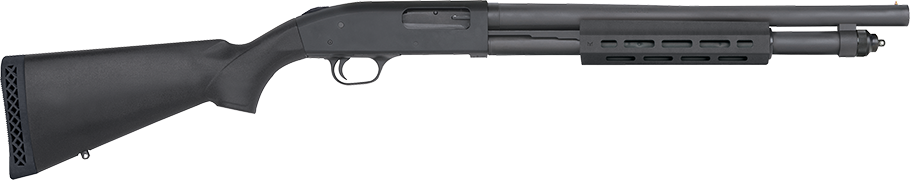 The Mossberg 590A1 Tactical feaures MilSpec construction- the only pump action shotgun to pass MilSpec 3443E; Parkerized or Marinecote finishes on heavy-walled barrels; metal trigger guard, M-LOK forend and safety buttons.