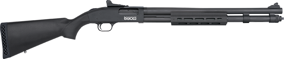 Standard 590 Pump-Action Features: Dual extractors, twin action bars, positive steel-to-steel lockup, and anti-jam elevator provide smooth operation. Other features include top-mounted ambidextrous safety, matte blue metal finish, magazine clean-out tube with cap, and a logo-engraved receiver.