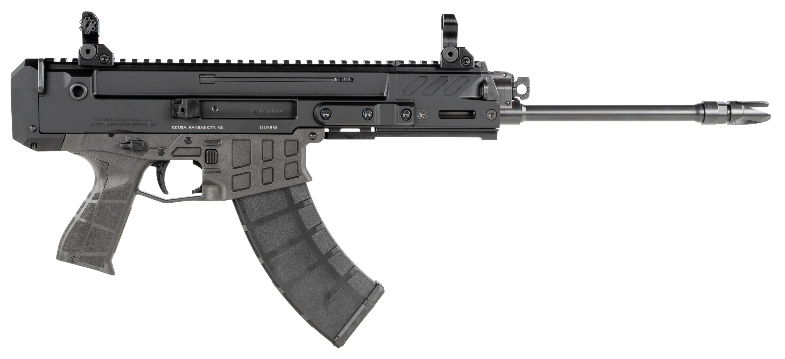 New in box. Ships with two 30 rd. magazines, paperwork, and cleaning kit. No brace included. Does include front and rear iron sights.