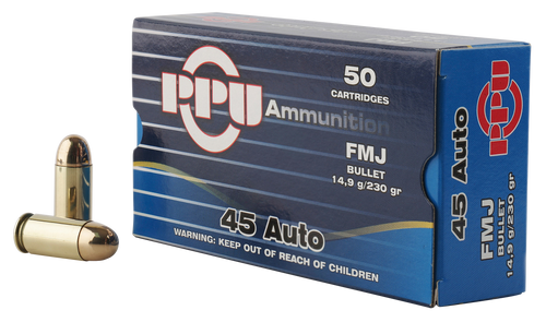 This 45 ACP features a 230 GR full metal jacket bullet and comes packaged 50 rounds per box, 10 boxes per case.
