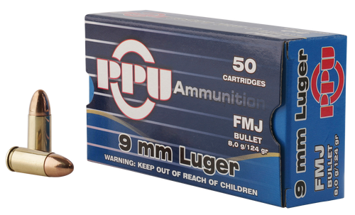 PPU’s Handgun ammunition is brass cased, non-corrosive boxer primed and features improved bullet designs which result in greater energy performance, bullet expansion and reliability. This 9mm load features a 124 GR full metal jacket bullet and comes packaged 50 rounds per box, 20 boxes per case.