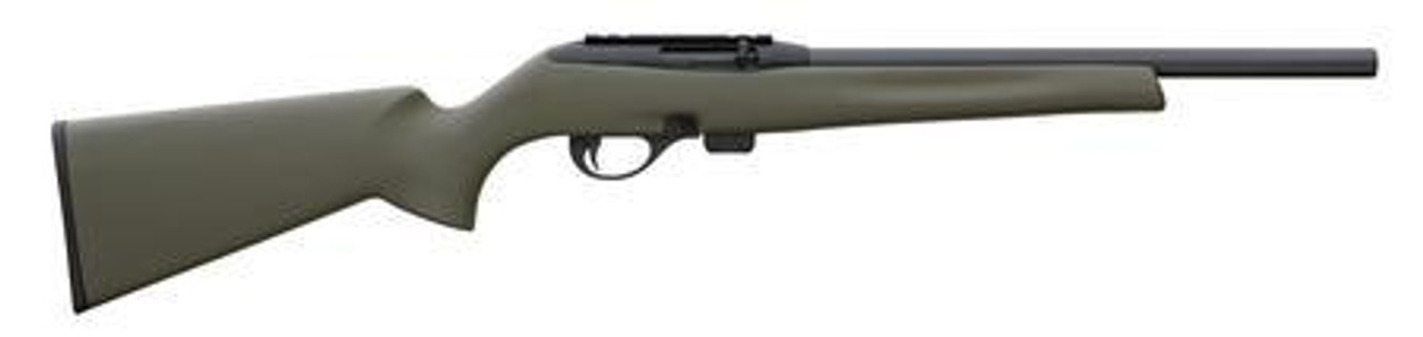 Heavy barrel with 5-R rifling for tack driving accuracy. Distinctive OD Green synthetic stock. One inch Weaver style scope rail attached for quick scope mount. Scope not included.
