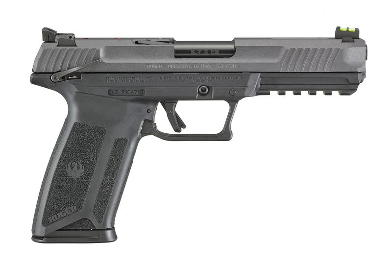 The Ruger-57 features impressive ergonomics which include an easy trigger reach, 1911-style ambidextrous manual safety, robust slide release and reversible magazine release latch. Through hardened, billet steel slide with lightening cuts is drilled and tapped for easy mounting of optics.