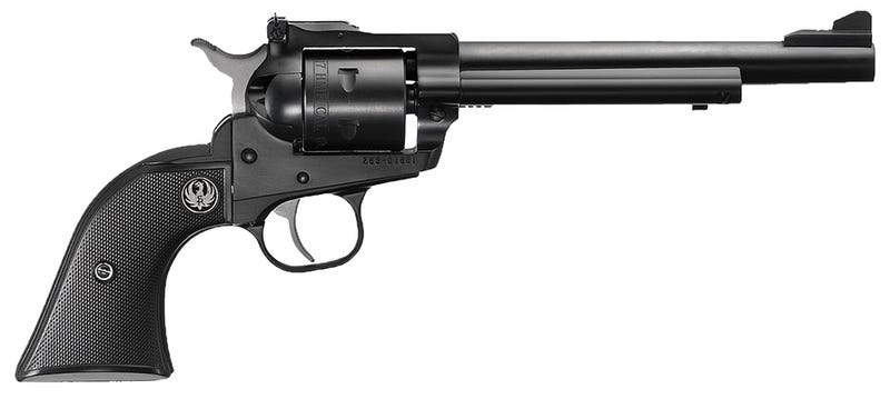 Ruger’s Single-Six revolver features a patented transfer bar mechanism and loading gate interlock provide an unparalleled measure of security against accidental discharge. It has a cold hammer-forged barrel and is perfectly sized. This model has a 6.5″ blued barrel, frame, and cylinder. It also has a black hard rubber grip and red ramp front sight with an adjustable rear.