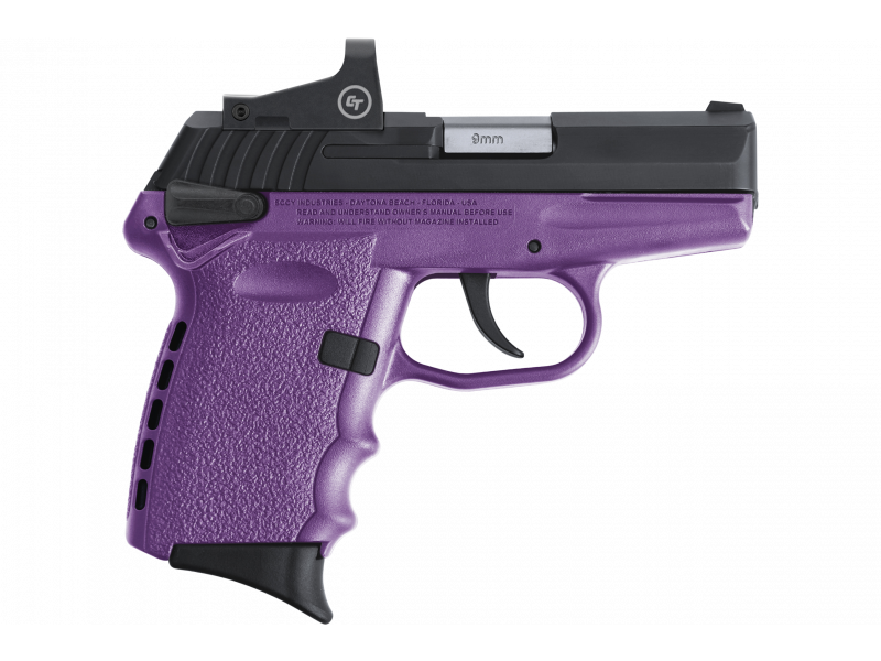 SCCY CPX-1CBPURD: SCCY’s CPX-1 is designed for concealed carry but large enough to get a good firm grip. It is considered to be one of the best priced, precision made “Pocket Pistols” on the market. Chambered for 9mm, it has a 3.1″ barrel with a 16:1″ right hand twist. The receiver is made from 7075 T6 aircraft grade heat treated aluminum alloy. The Zytel polymer frame features ergonomic finger grooves and an integral recoil cushion on the back-strap. The slide is machined from stainless steel with a Zytel over-molded polymer extension for ease of operation. Now taken to the next level, the CPX-1 RD comes equipped with a Crimson Trace CTS-1500 Reflex sight.