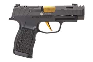 Sig Sauer P365XL Spectre Comp, Striker Fired, Semi-automatic, Polymer Frame Pistol, Sub-Compact, 9MM, TiN Gold 3.7″ Barrel, Nitron Finish, Black, TiN Gold Flat Trigger, XRay3 Night Sights, Optics Ready, Integrated Compensator, 12 Rounds, 2 Magazines P365V003