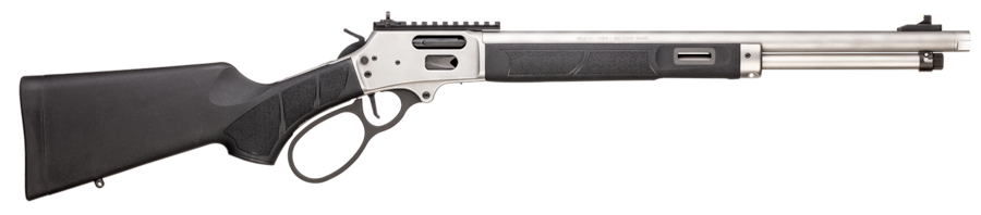 The Model 1854 is a modern revival of Smith & Wesson’s Volcanic lever-action series. The rifle features polymer furniture for a lightweight feel and high corrosion resistance along with a removable magazine tube and a side loading gate for fast and easy loading and unloading. These classic features are combined with a top-mounted picatinny rail for optics mounting along with an M-LOK slot on the forearm for mounting various accessories. This model features a 19.25-inch barrel and is chambered in .44 Magnum.