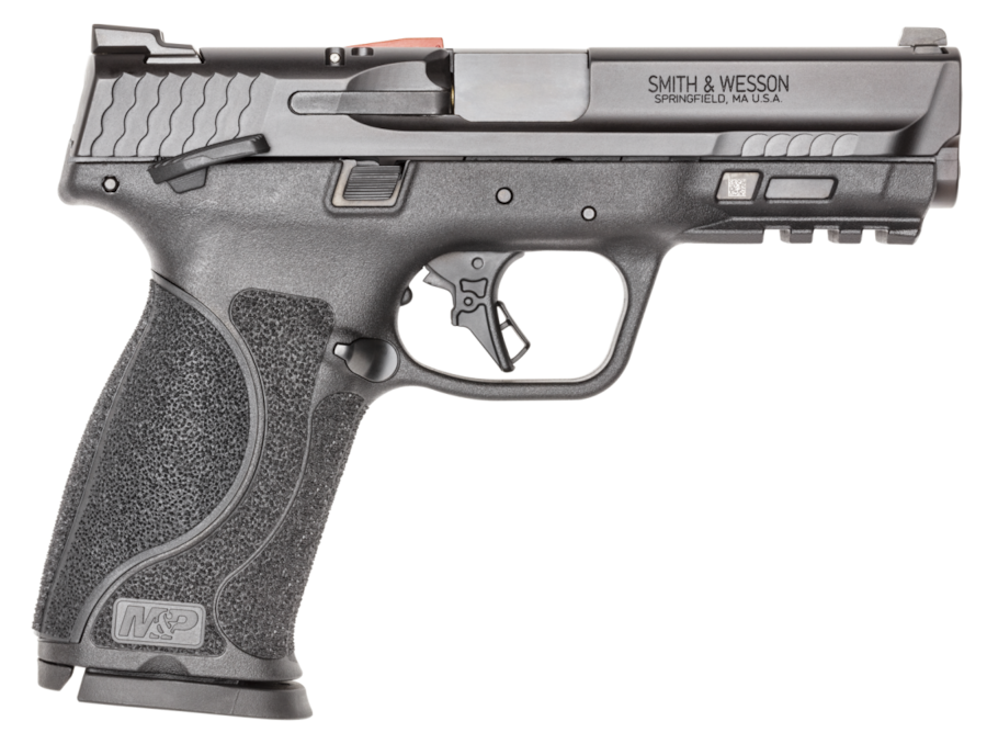 The M&P series is Smith & Wesson’s flagship duty pistol and has seen extensive use with many law enforcement agencies across America. The polymer frame allows the pistol to be lightweight and highly corrosion-resistant while the more flexible material helps to absorb recoil during firing. The pistol also features a striker action that allows for a consistent trigger pull on each shot along with an accessory rail for installing lights and laser aiming devices. This model is California-compliant and features a loaded chamber indicator and an ambidextrous manual safety. The pistol features an all-black finish with Smith & Wesson’s signature Armonite coating. Two 10-round magazines are included.