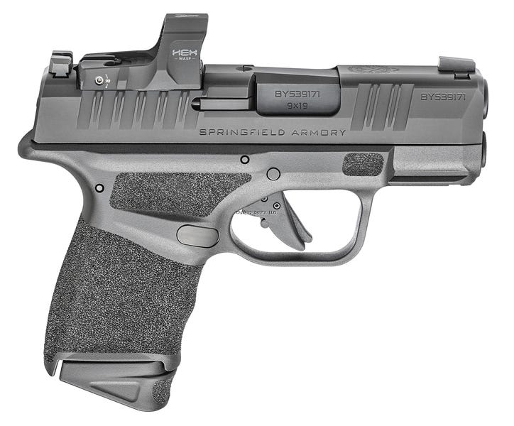 After years of development, we are proud to introduce the Hellcat, the highest capacity micro compact 9mm in the world and the next generation of defensive pistol from Springfield Armory. The 3″ barreled micro compact pistol features a class leading capacity of 11 plus 1 with its patented magazine – 13 plus 1 with the included extended mag – and is the result of years of painstaking development and engineering in addition to intensive collaboration with top engineers, shooters and self defense experts. In addition to minute dimensions and stunning capacity, the Hellcat offers a paradigm shifting approach to red dot sight integration for an EDC pistol. Offered in an Optical Sight Pistol configuration, the Hellcat OSP features a seamless cover plate that removes to allow direct mounting of a micro red dot to the slide for the lowest possible profile. The result? A micro sized pistol weighing in at a mere 17.9 oz. with capabilities previously reserved only for full size defensive handguns.