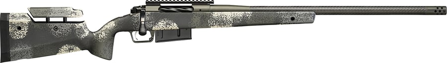 The Model 2020 Long-Action is the latest addition to Springfield Armory’s 2020 line designed to deliver 0.75 MOA guarantee with popular high-power rifle cartridges. The rifle features a durable Cerakote finish that is paired a premium hand-painted carbon fiber stock. The stock features M-LOK slots built in for quick and easy customization. Included is also a TriggerTech Field-series trigger that allows for user adjustment between 2.5 and 5 pounds along with a Remington 700 SA pattern Picatinny mount for optics. This model is chambered in 7mm Remington Magnum and features a 24-inch carbon fiber barrel and an Evergreen Camo stock color pattern. The stock features an adjustable cheek riser for custom fit. One 3-round Accumag magazine is included along with a soft rifle case. *Optic is for display only and is not included.*
