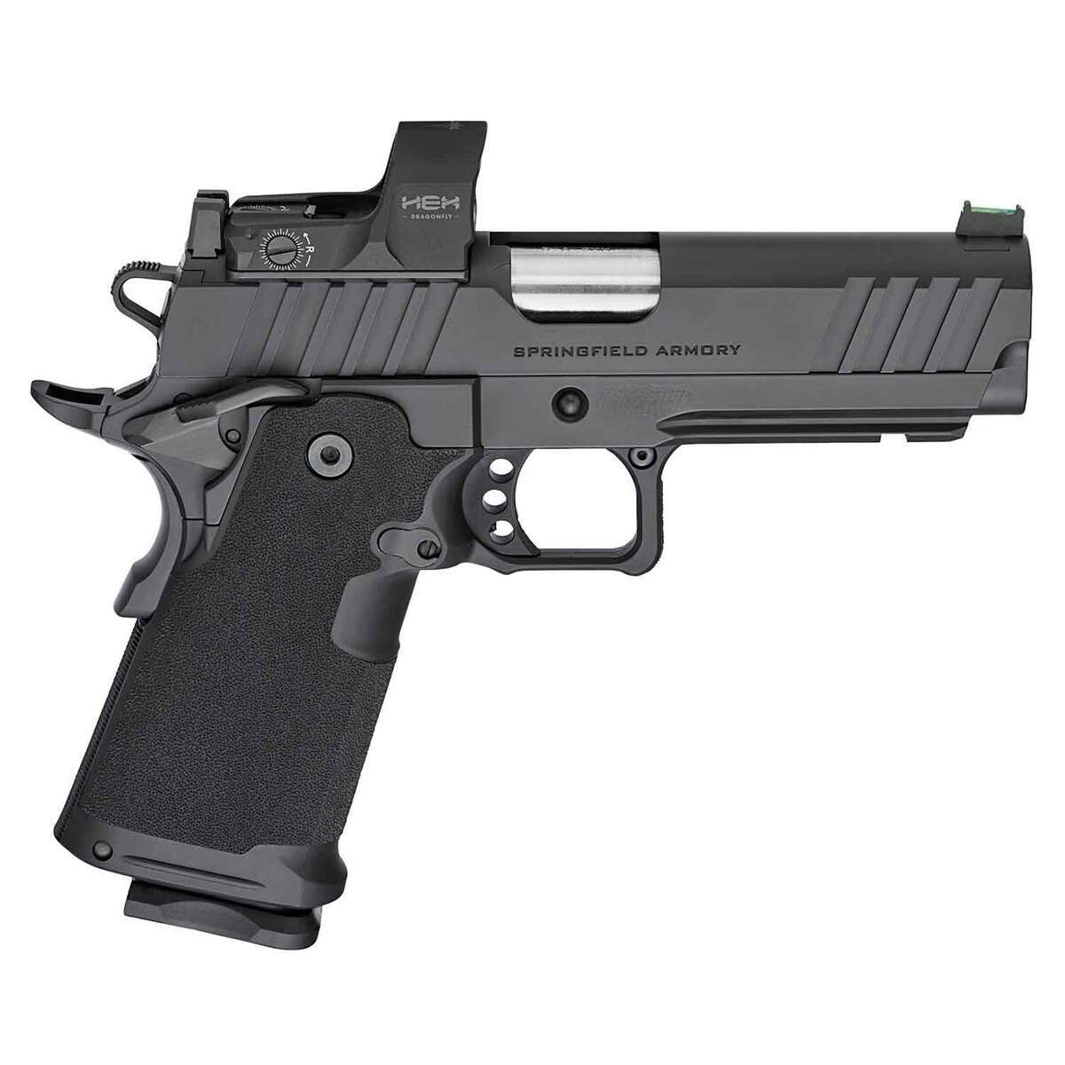 Springfield Armory Prodigy 9mm Luger 4.25in Black Cerakote Pistol – 20+1 Rounds – The Prodigy from Springfield Armory takes the proven 1911 platform and enhances it with double-stack capacity and a performance-driven feature set. Reconfigured around a double-stack magazine, the Prodigys polymer grip module mounts to its forged steel frame offering capacities of 17+1 and 20+1. Optics ready with an ambidextrous safety and picatinny rail the Prodigy combines the most beloved characteristics of the 1911 with modern capacity for unrivaled performance. Includes Hex Dragonfly Red Dot.