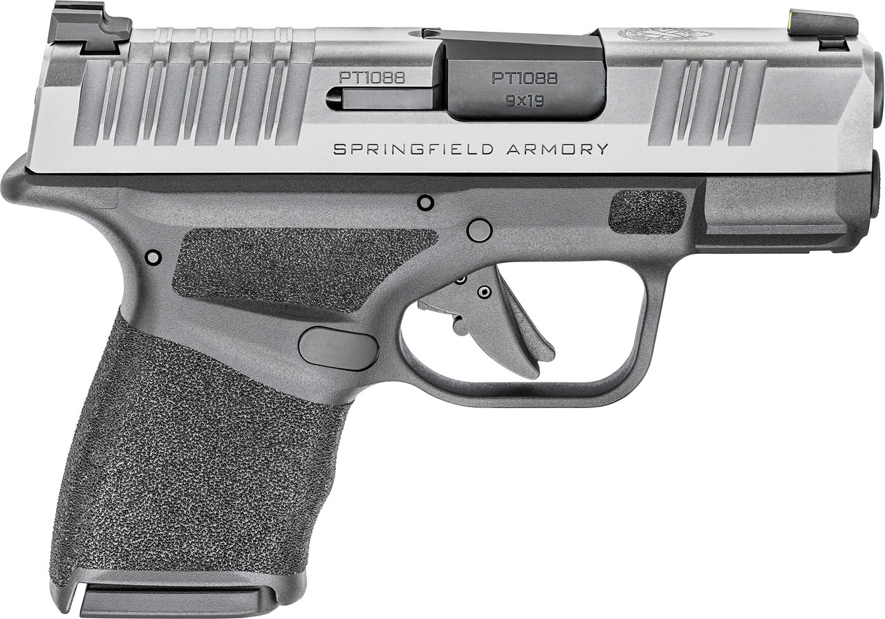 Springfield Armory’s Hellcat is the world’s highest capacity micro-compact 9mm. The Hellcat sports an unnaturally accurate hammer forged barrel that makes it an exceptionally straight shooting concealment pistol. The 3″-barreled pistol measures a mere 1″ wide and weighs just 18.3 oz. empty yet features a class-leading capacity of 11 rounds with flush-fitting magazine. Its extended magazine bumps up the round count to 13. Top slide serrations make it easy to rack the Hellcat in a hurry, while its non-proprietary accessory rail allows you to accessories with your favorite light and/or laser. Recontoured for enhanced ergonomics, the Gen 2 trigger offers a more comfortable shooting experience and is a refinement of the most important interface between the pistol and the shooter. It utilizes a high visibility tritium & luminescent front sight paired with a Tactical Rack U-Dot rear sight for easy target acquisition in all lighting conditions. The Hellcat also features reversible mag release, loaded chamber indicator and custom pressure activated grip texture on the frame which features a pattern of staggered pyramid shapes. The Hellcat Micro-Compact OSP (Optical Sight Pistol) has its billet-machined rear slide deck cut to accept a micro red dot sight. The Gear Up Package includes 3 extra mags, no range bag.