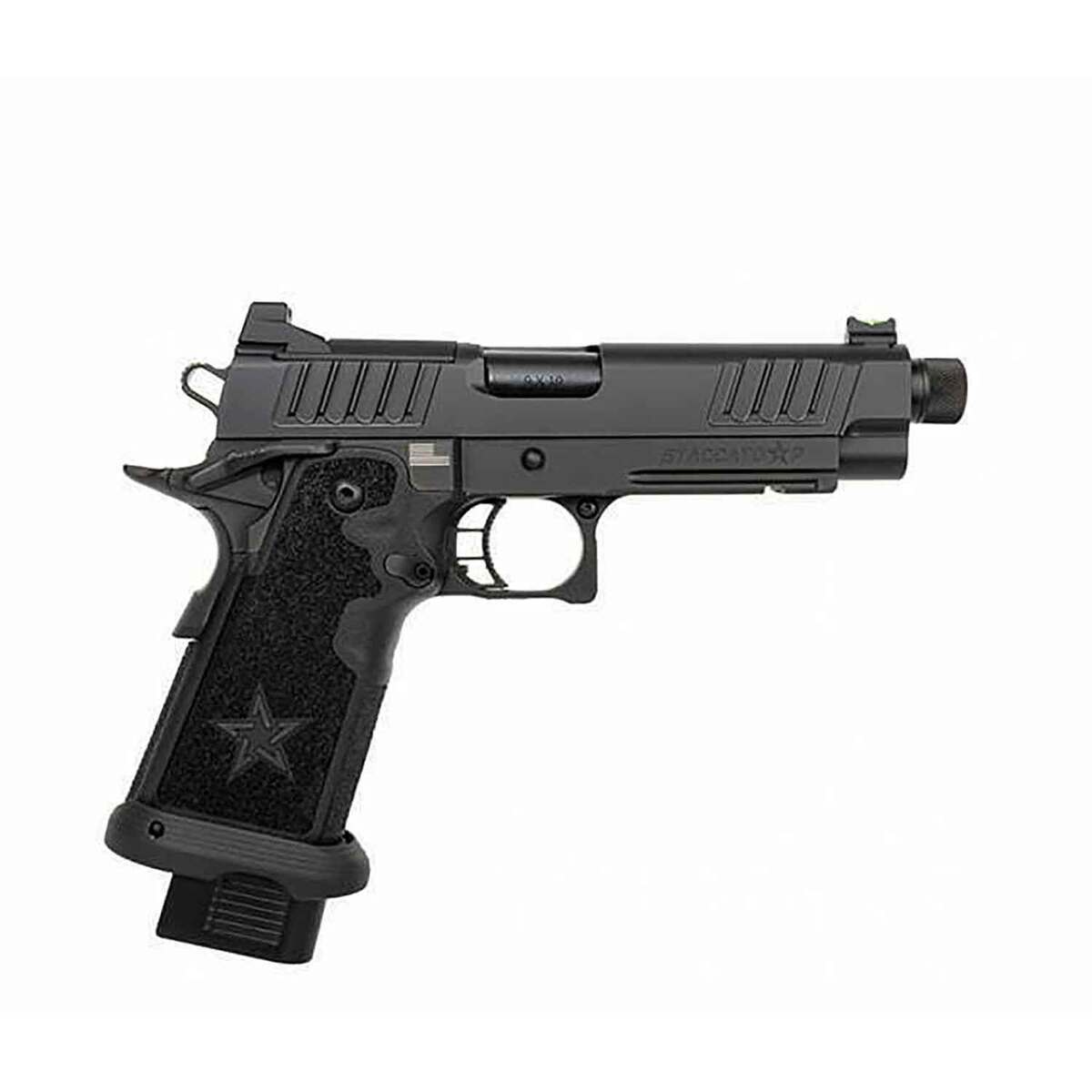 Staccato P DPO 9mm Luger 5in Diamond Like Carbon Black Pistol – 20+1 Rounds This Staccato P Threaded Barrel pistol sports a longer more accurate 5 inch threaded barrel. The 5 inch threaded barrel version, perfect for your favorite suppressor or Dawson ice comp. It’s improved serrations and fiber optics sights, defiantly puts the p in this 2011 professional pistol.