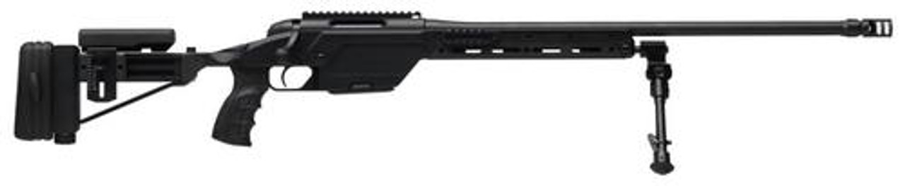The Steyr SSG 08 is a high-precision, high-performance rifle that was designed to the specifications of Austria’s EKO COBRA anti-terrorism unit and developed for professional applications in demanding environments. Each SSG 08 is built on a system that includes a folding hard Eloxal-coated aircraft-aluminum stock with an adjustable rear monopod, a cheek piece that is vertically and horizontally adjustable, and a recoil pad that is horizontally adjusted by adding and removing spacers and vertically adjusted by sliding the pad itself up and down. The pistol grip is configurable with a choice of interchangeable back straps to adjust for hand size and optimized grip. The action is topped with a 20-MOA Picatinny rail, while the forend allows for short Picatinny rails on both sides. The underside of the stock also houses a UIT rail for the addition of accessories such as a handstop. A newly designed bi-pod is included, and the entire platform is in a black finish.