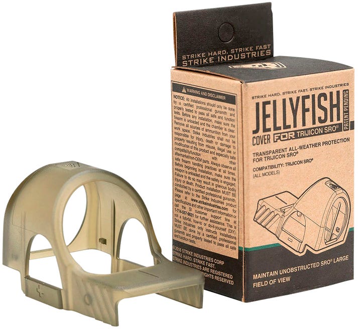 The Strike JellyFish Cover for Trijicon SRO provides an all-weather protection. Maintain the clean, crisp red dot and unobstructed large field of view of the SRO (Specialized Reflex Optic) design. Help protect your gear with this snug rigid fit flexible Thermoplastic Polyurethane (TPU) construction material. The JellyFish cover has an open design access to the illumination controls. Quick and easy installation that can be rapidly removed for zeroing or when the battery needs replacement. Field tested for effectiveness, the Strike JellyFish Cover for Trijicon SRO ensures the legendary Trijicon durability on and off the range.