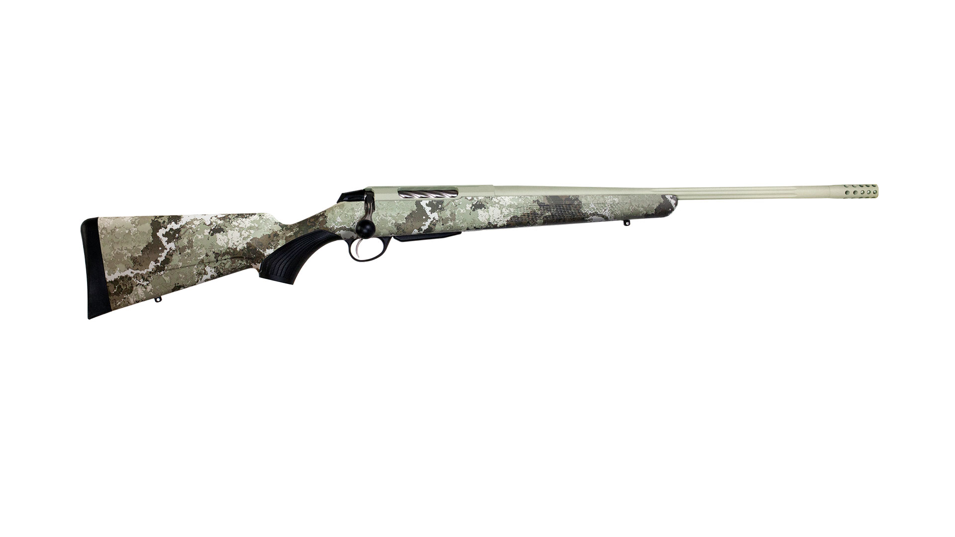 Tikka’s T3x Lite combines high performance with lightweight ease. The T3x receiver introduces a widened angular ejection port making it easier to feed one cartridge at a time, and extra screw placements on top of the receiver to robustly attach a Picatinny rail. The Lite models are equipped with the T3x synthetic stock with modular pistol grip and forend capabilities. It comes with the classic low-angled grip.