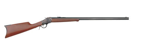 Uberti’s 1885 high-wall rifles are perfect for hunters and shooters who relish the challenge of hitting the mark with a single-shot rifle. They are chambered in .45-90, just like the original, and are capable of taking any big game in north America. They are also great for big-caliber, long-range shooting competitions. Handsome bluing on the octagonal barrels teams with the rich walnut stocks and forends to enhance their sleek appearance. Two versions of the 1885 high-wall rifle are available with case-hardened frames, open sights and your choice of a 30″ or 32″ barrel.