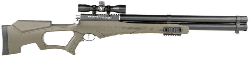 The Umarex AirSaber airbow uses high-pressure air and a special arrow to achieve velocities up to 480 FPS and 178 ft lbs of energy. Includes an Axeon scope and three (3) field tipped arrows.