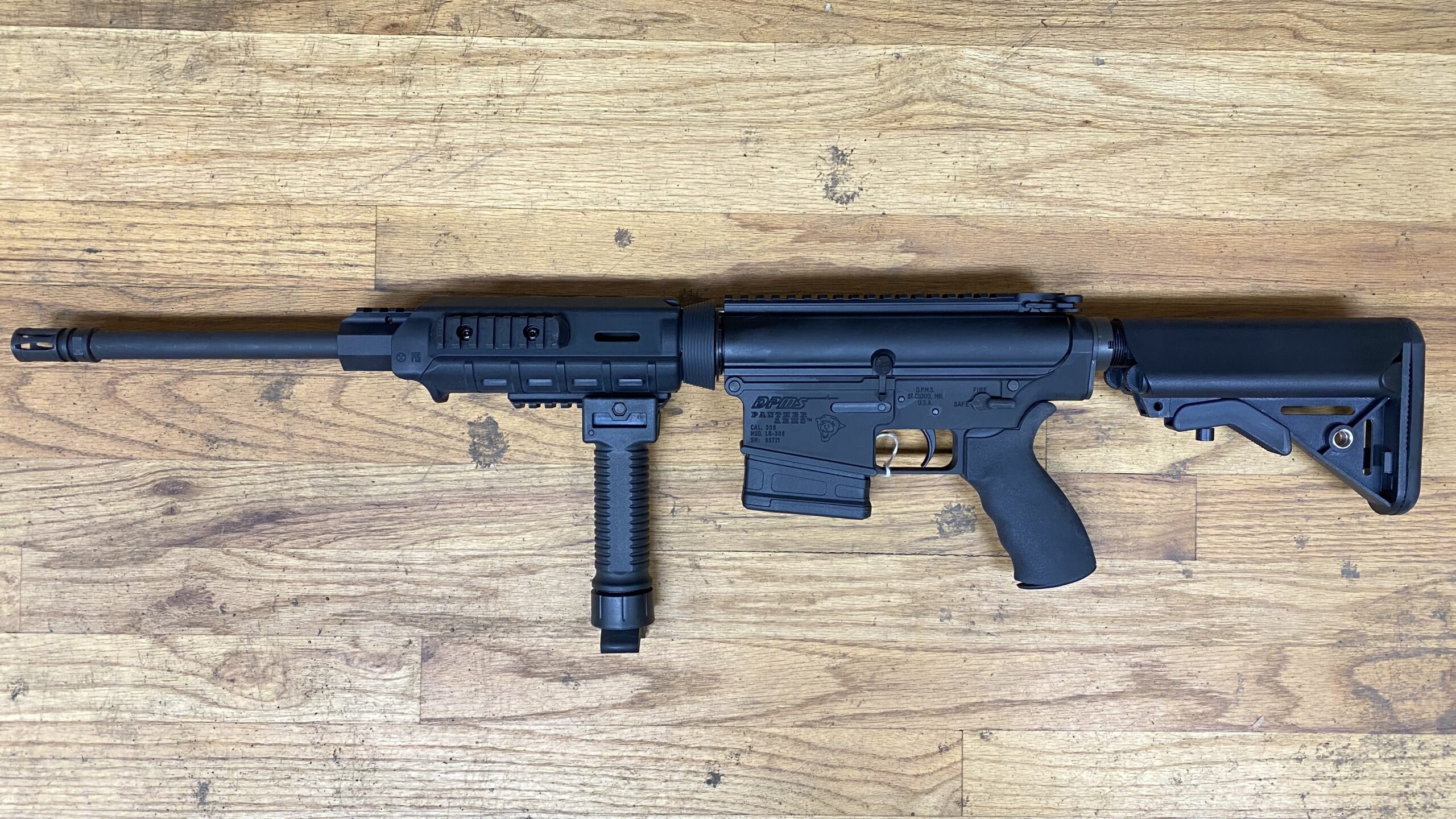 Used in great condition. Ships with one 10 round magazine. Foregrip with bipod. Magpul MLOK handguard. LMT stock. No box.