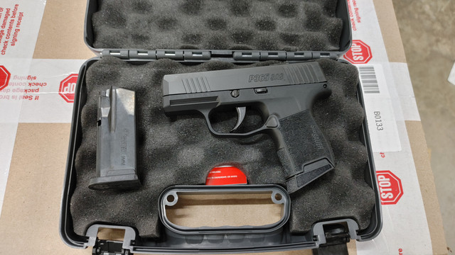 The P365 SAS is packed with features on a durable and reliable frame Sig Sauer is known for. This 9mm handgun comes with a 3.1 inch carbon steel, night sights, a snagless slide, and two 10 round magazines. All of the controls are also flat for smooth sides to prevent snagging.