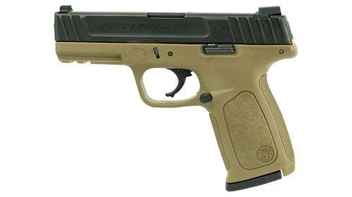 Comes with a hard case and 2 magazines. The Smith & Wesson SD9 pistol is a self-defense firearm with a Flat Dark Earth finish with a matte black slide. The pistol also has 3-Dot white sights, polymer frame, and stainless steel slide and barrel with an Amornite finish.